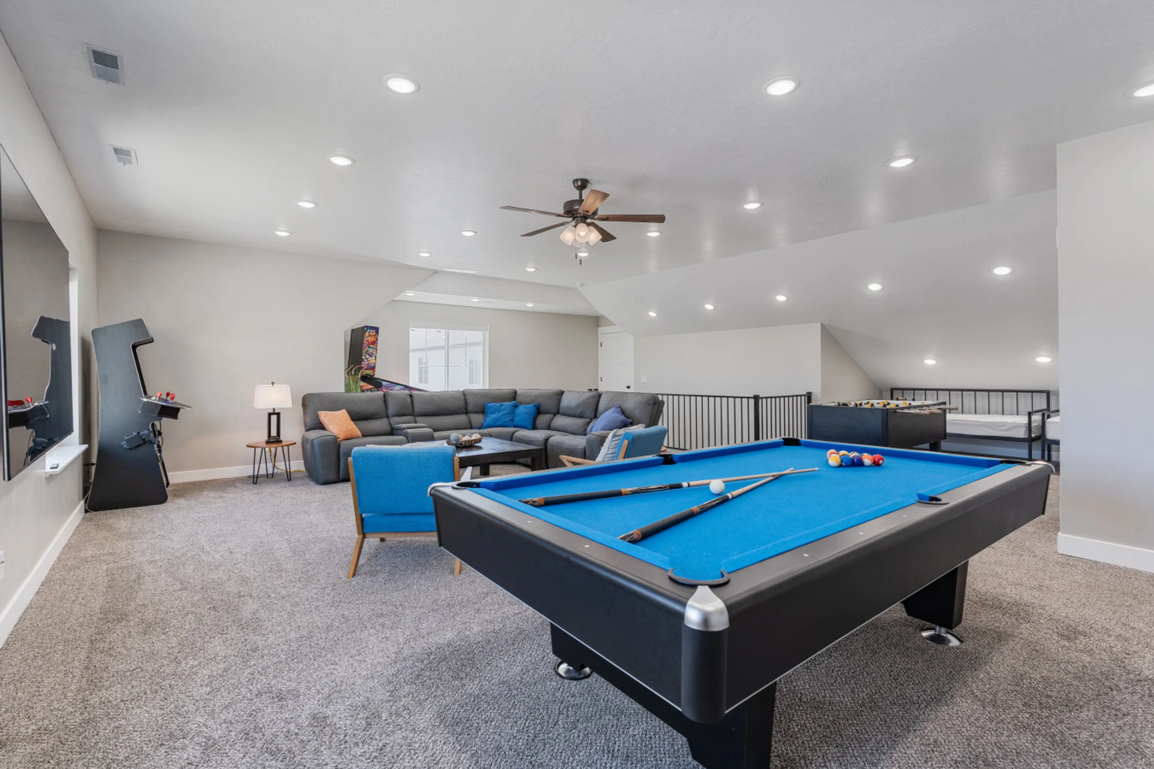 Welcome to Bear Lake Fun Stop! This centrally located 6-bedroom, 4,000 sq ft getaway is built for big groups and nonstop fun. Sleeping up to 22 guests, enjoy a private hot tub, barrel sauna, gaming loft, community pool access, and an easy walk to Bear Lake. Plus—2 kayaks, 4 sleds, and 2 bikes for ye...