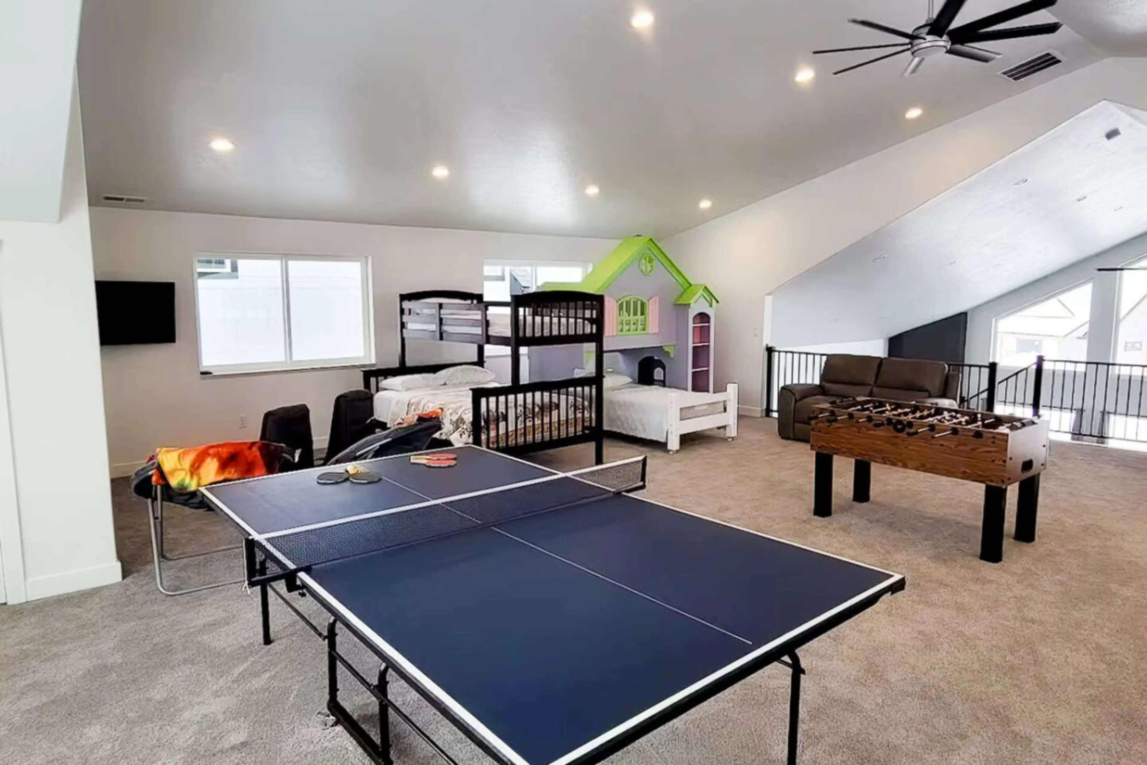 Enjoy all that Bear Lake has to offer at this impressive New 3885 sq ft 4-bedroom, 5-bath, huge loft vacation rental with Ideal Beach Resort access. Featuring Swimming pools, Hot Tub, Beach access and more. Home has 2 Smart TVs, Ping Pong, Foosball table. This Luxury home offers entertainment for t...